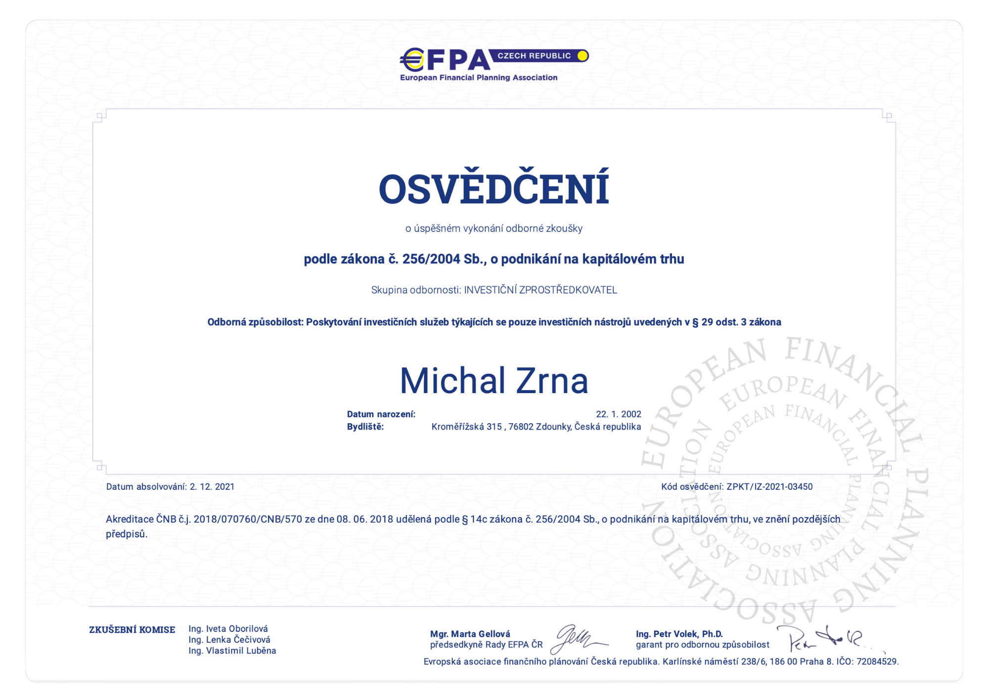 Vystudoval jsem Finance a finanční technologie na Univerzitě Tomáše Bati, kde jsem se ve své závěrečné práci zaměřil na analýzu trhu životního pojištění. Během studií jsem měl možnost účastnit se prestižní mezinárodní soutěže CFA Institute Research Challenge, kde jsme s týmem prováděli analýzu vybrané společnosti, finanční rozbory, oceňování i doporučení pro investory. Skončili jsme druzí, ale hlavní přínos pro mě byla zkušenost, jak spojit teorii s praxí, naučit se přesně analyzovat data a umět je zároveň srozumitelně prezentovat.